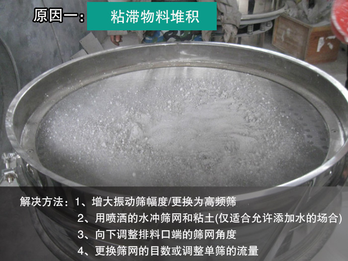 4、更換篩網(wǎng)的目數(shù)或調(diào)整單篩的流量,讓物料順利排出。
